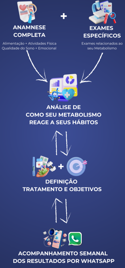 Tenho um grande compromisso com o alcance dos objetivos de cada paciente. Sem custos adicionais ao valor já pago nas consultas, para acompanhar sua jornada da melhor forma possível, crio um grupo no Whatsapp com você, onde semalmente: